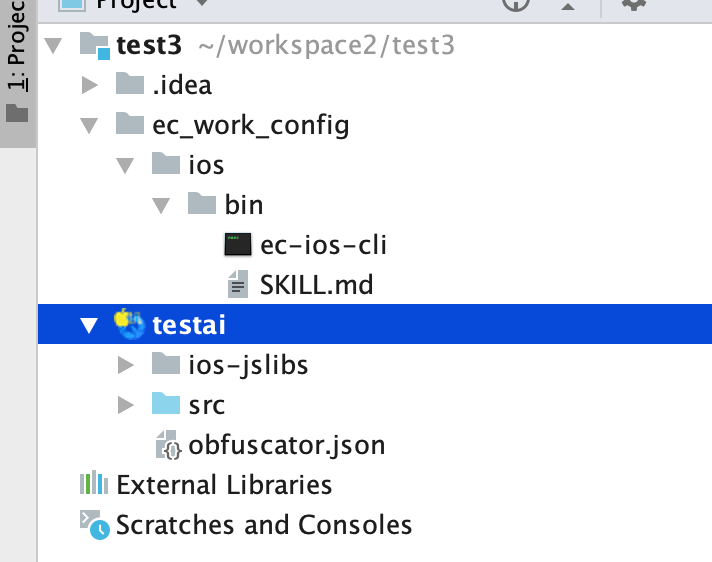 - 如果没有出现,ec_work_config/ios/bin目录,可以关闭 IDEA 重新打开工程文件夹