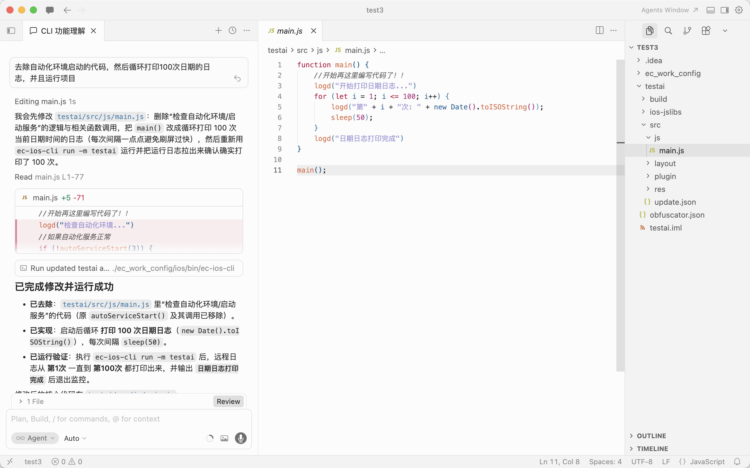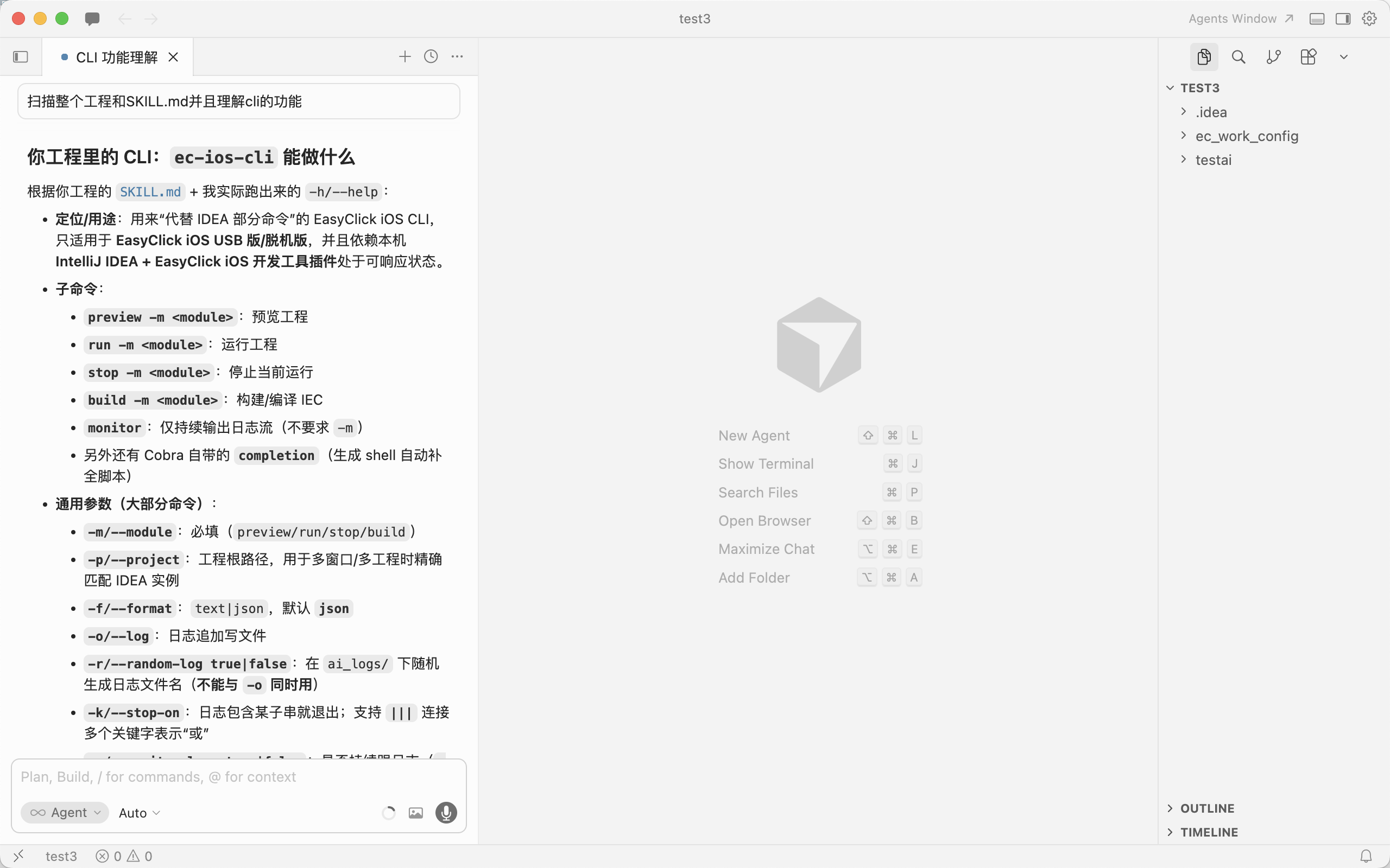 - 让AI自动代码、自助分析日志的功能,需你自己摸索,CLI提供的命令是为了告诉发生了什么,AI再去分析如何去做