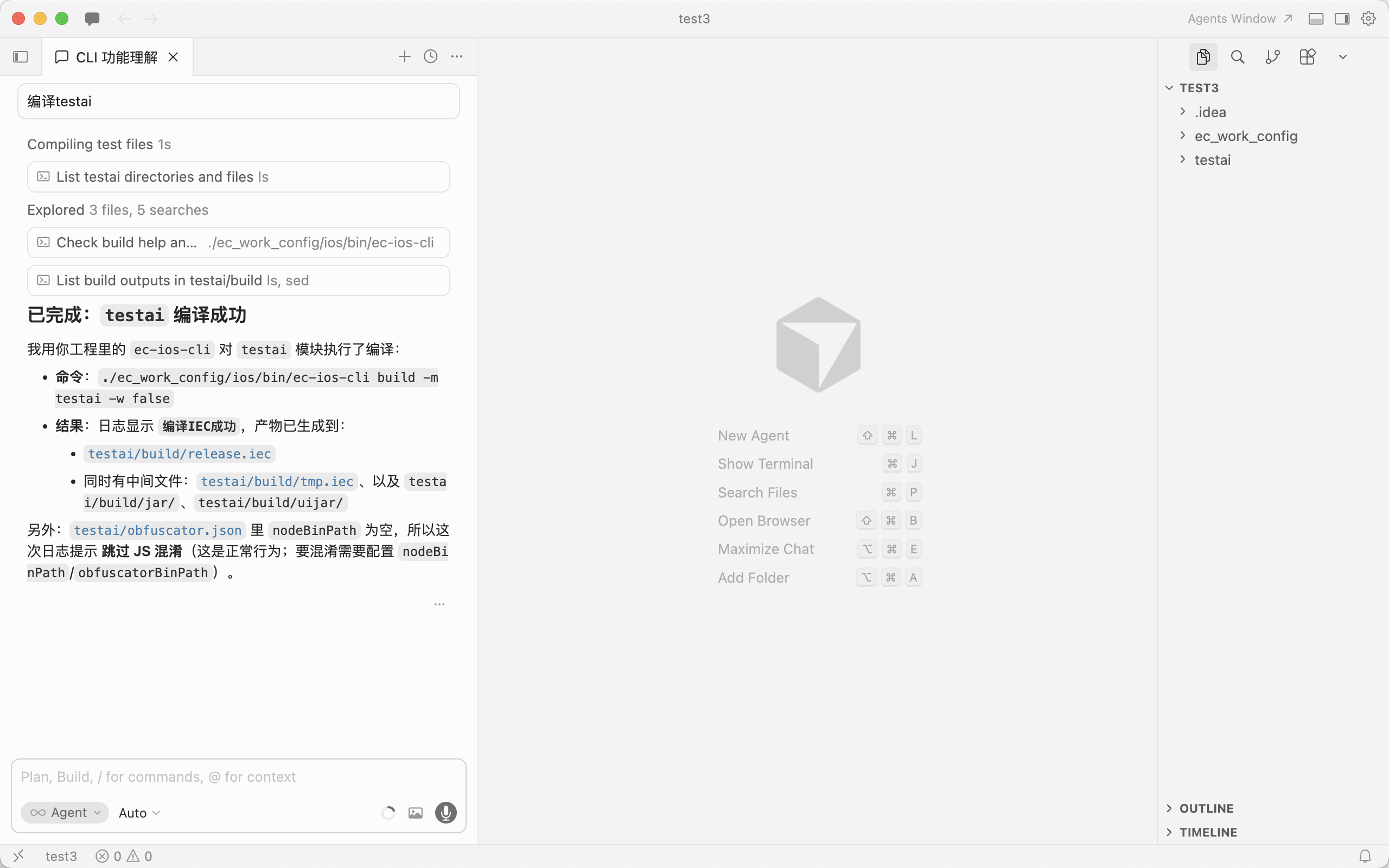 - 跟AI对话,让AI编译,例如编译testai工程
