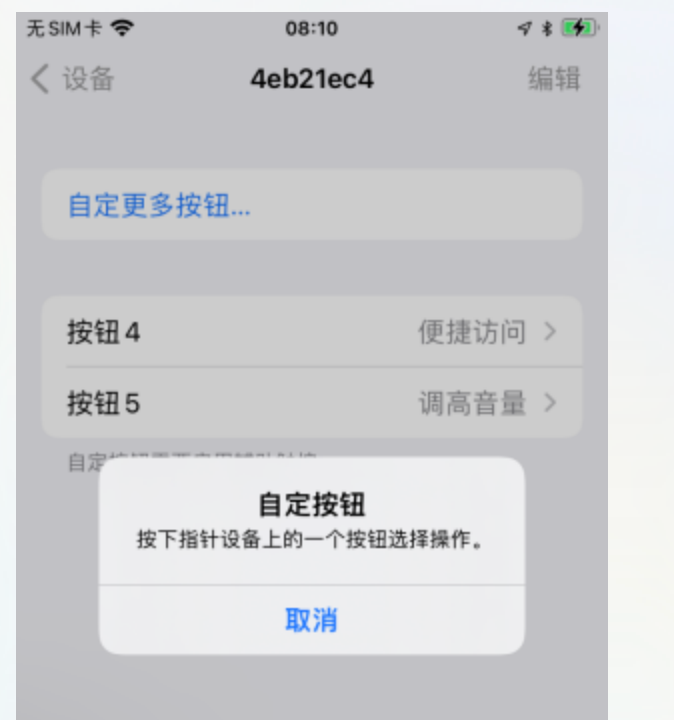 - 先打开手机设置-辅助功能-触控-辅助触控-设备-进入已连接设备选项界面,点击某个自定义更多按钮,会出现弹窗,要求按下鼠标键